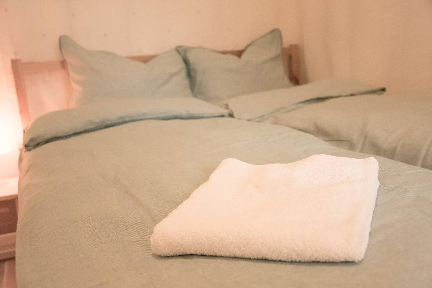 Schlafzimmer: 1 x Doppelbett (min. 1,60 m x 2 m)