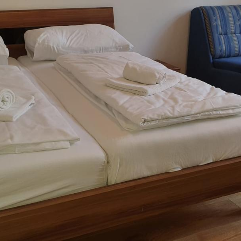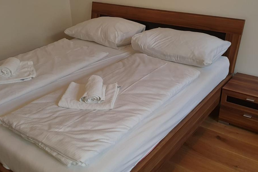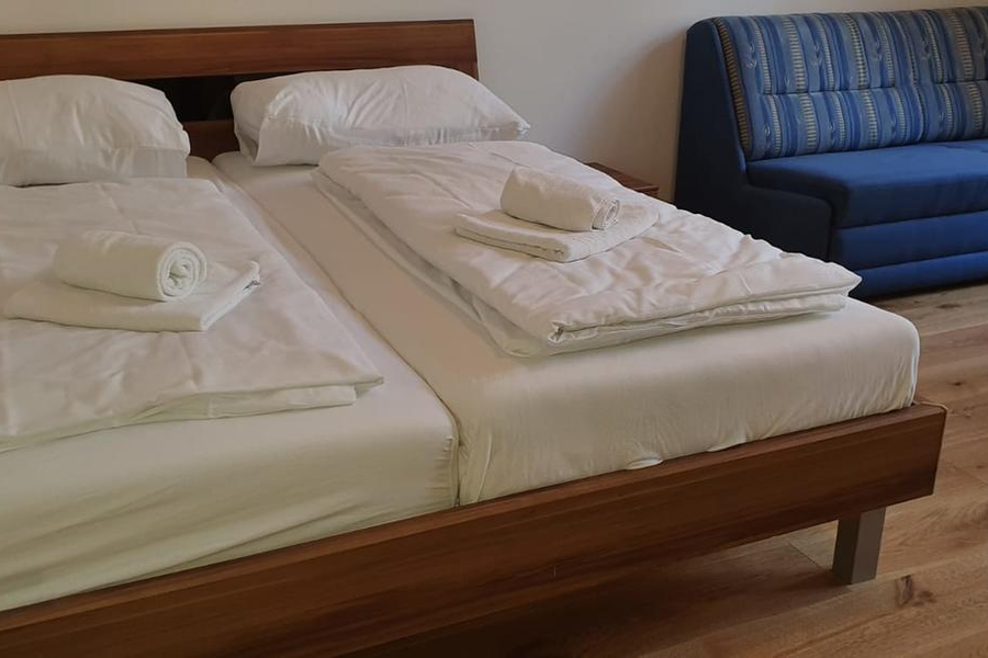 Living and sleeping: 1 x Double bed (min. 1,80 m x 2 m), 1 x Sofa bed (2 persons)
