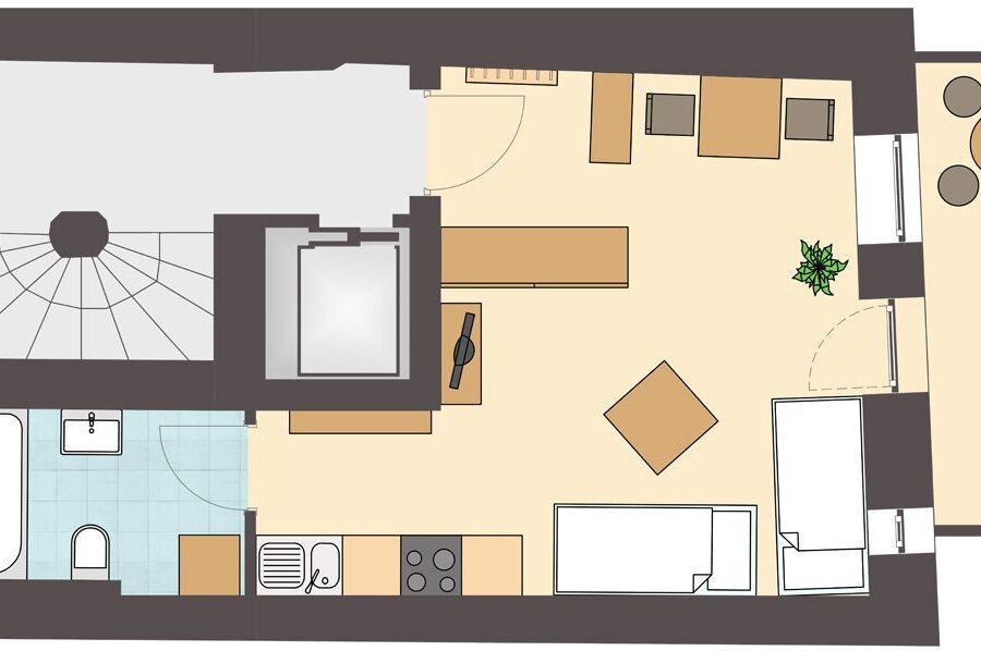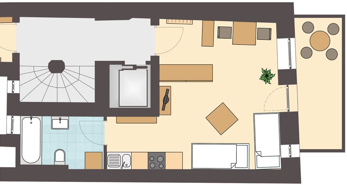In the immediate vicinity are all facilities of modern life, such as shopping and dining options, cafes and restaurants, shopping and gastronomy mile, the market square and the Innsbruck market hall with its range of farm products as well as the Tyrolean department store.