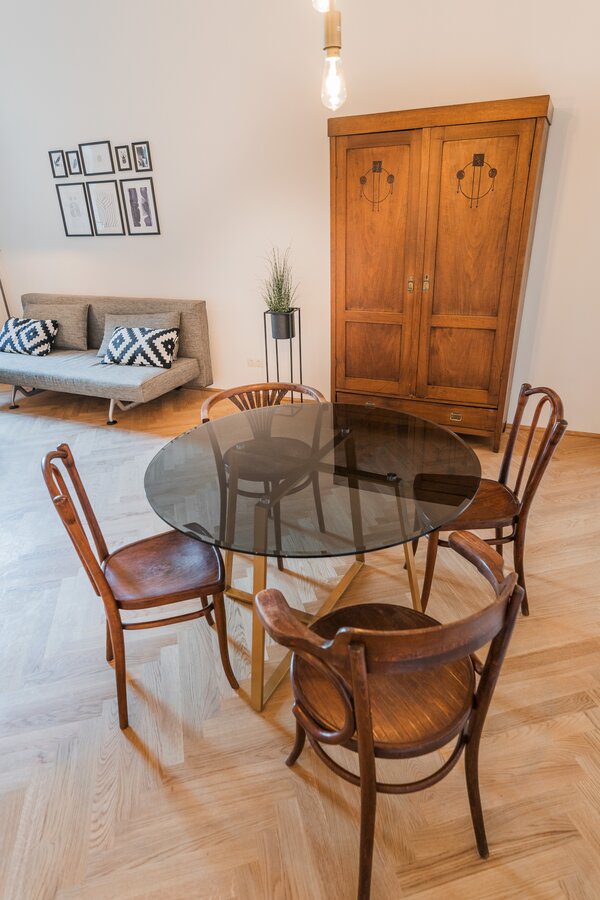 This newly renovated apartment with balcony is located in Vienna's fashionable "Boboville" district between Museumsquartier and Spittelberg, in the heart of Vienna. Walking distance to the next metro station "Volkstheater".