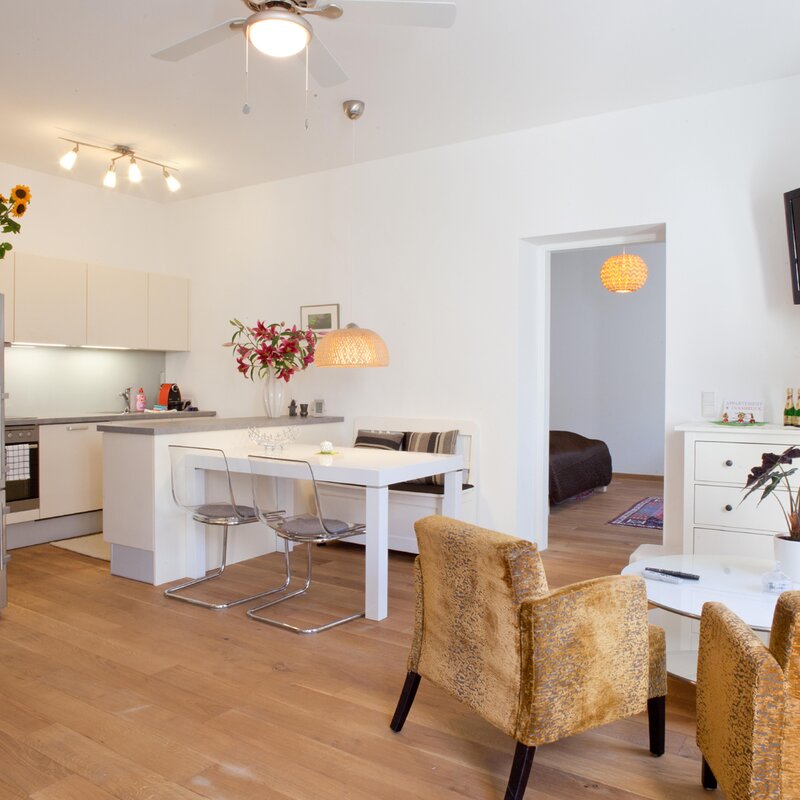 The "Hafelekar" apartment offers 80 m² of space for up to 6 people. Absolutely quiet, in the oldest part of Innsbruck in Mariahilf, 3 minutes on foot to the "Golden Roof" in the historic old town, modern, practical and stylish
